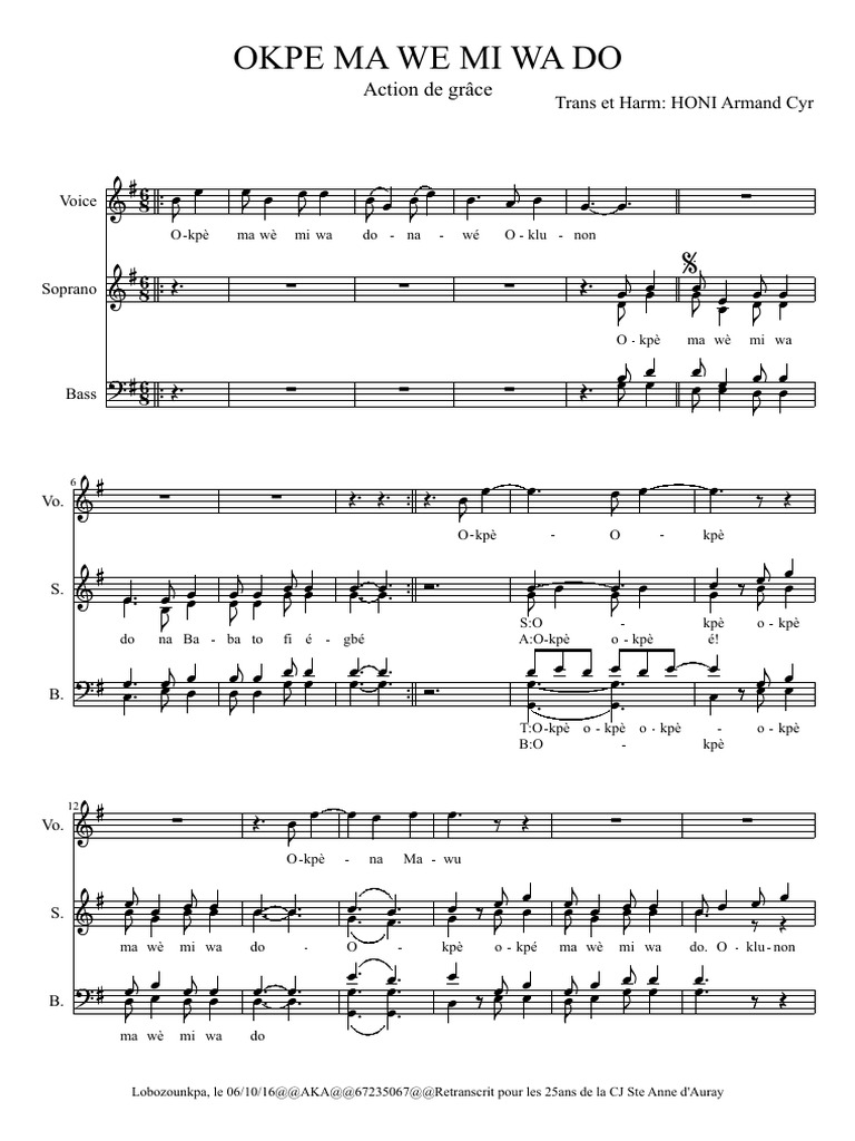 ma wè mi wa do O kpè o kpé ma wè mi wa do. O klu non