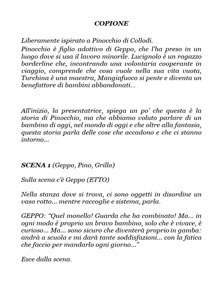 storia di Pinocchio, ma che abbiamo voluto parlare di un