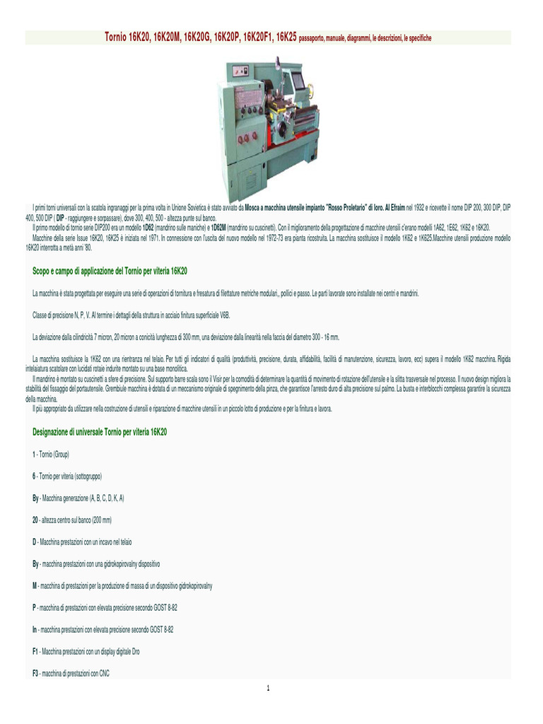 Specifiche del tornio analoghi 16K20 e moderno