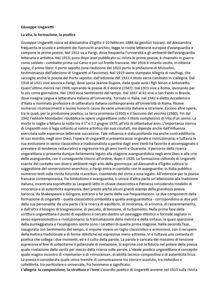 ungarettiano sta l'esperienza della Prima guerra mondiale, combattuta dal poeta in trincea per tutta la sua