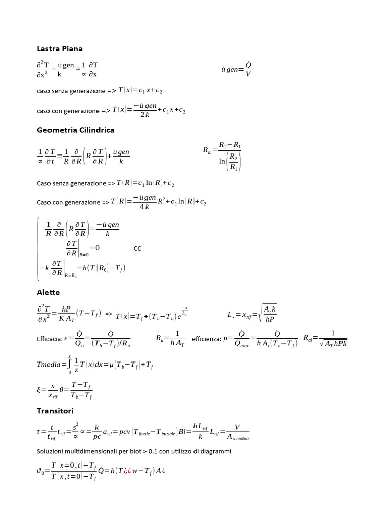 τ= t rif = ∝= a rif = pcv ( T finale−T iniziale ) Bi= Lrif =