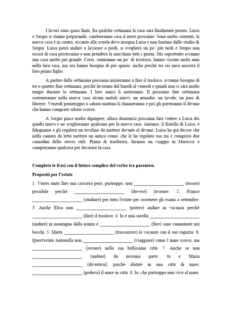 ______________________ (fare) il trasloco. 4. Io e mia sorella ______________________