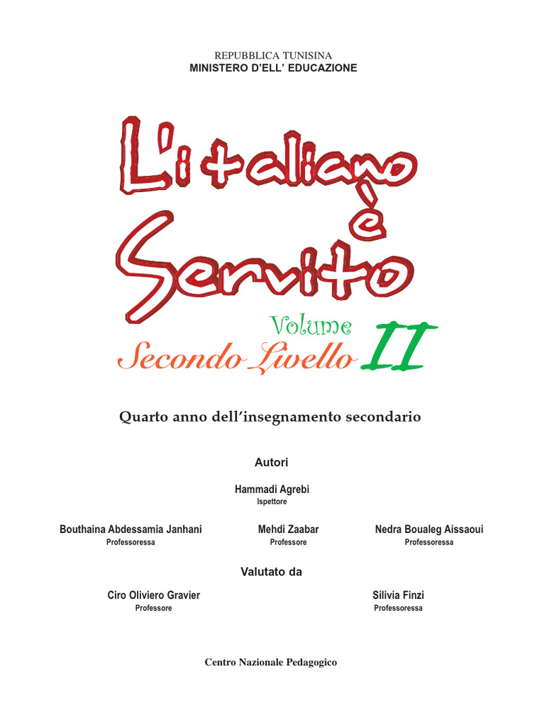 anno). Di conseguenza, ci si limiterà per il contenuto grammaticale, lessicale e culturale, alle