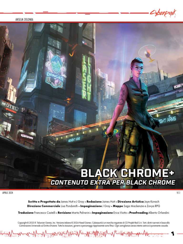 Copyright © 2023 R. Talsorian Games, Inc. Versione italiana © 2024 Need Games. Cyberpunk è un marchio registrato di CD Projekt Red S.A. Tutti i diritti riservati in base alla