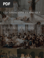 NOTA SUI DIRITTI PUBBLICI E PRIVATI DELLE DONNE Ci detto ricordiamo che, in genere, le donne erano escluse da diritti politici non solo in Grecia ma in tutte le antiche civilt.4 Sono i diritti cosiddetti "civili" (o privati) che mutano invece in modo consistente da una societ all'altra. Tali differenze preludono per a quelle conquiste anche di quei diritti politici che saranno infine riconosciuti nei moderni ordinamenti giuridici occidentali non solo prescindendo finalmente anche dal sesso dei cittadini, ma tenendone positivamente conto soprattutto per quanto concerne la tutela della maternit. La tradizionale distinzione giuridica tra diritto "pubblico" e "privato" sfuma quindi storicamente sino a confondersi e persino capovolgere una gerarchia di norme che solo una comoda semplificazione dottrinale. Una semplificazione formale che spesso nasconde una pesante discriminazione sociale. Un semplice esempio pu chiarire il concetto: la maggiore o minore tutela della condizione di maternit delle donne a mantenere il diritto a conservare il posto di lavoro non