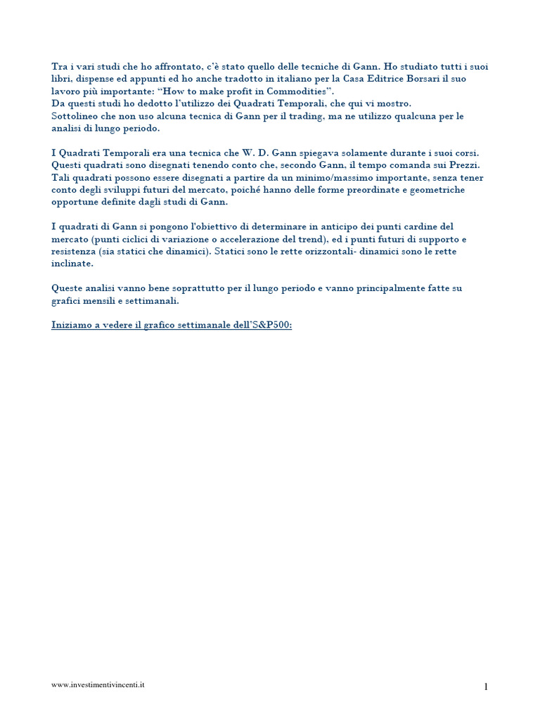 Tra i vari studi che ho affrontato, c’è stato quello delle tecniche di Gann.