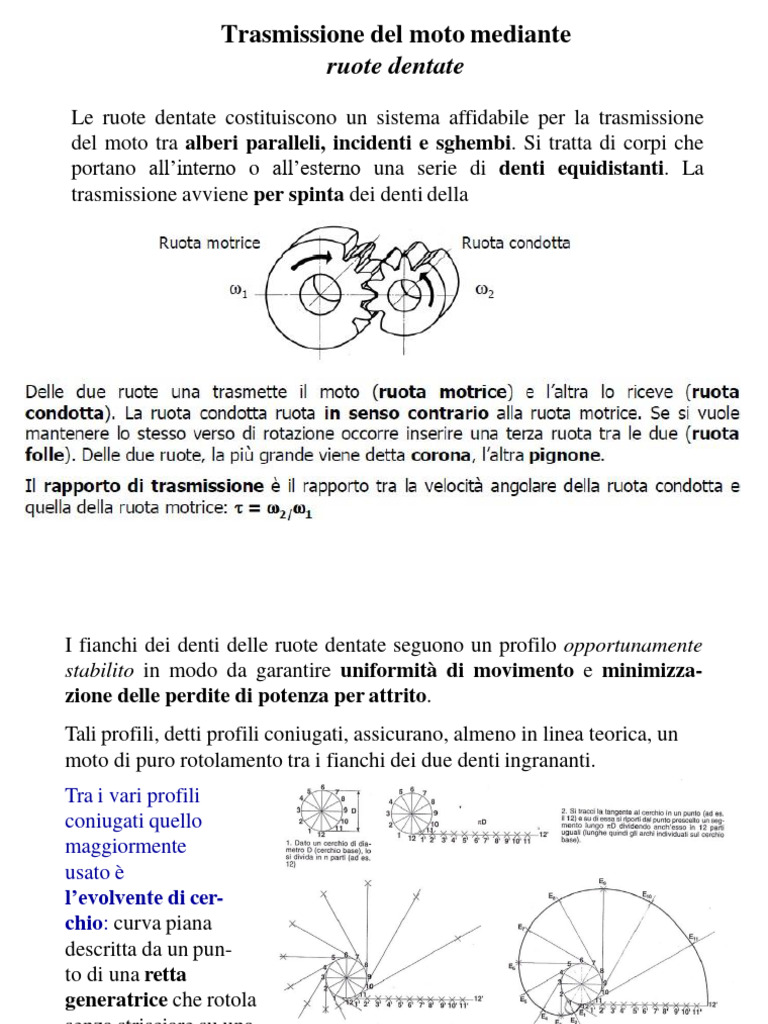 I fianchi dei denti delle ruote dentate seguono un profilo opportunamente