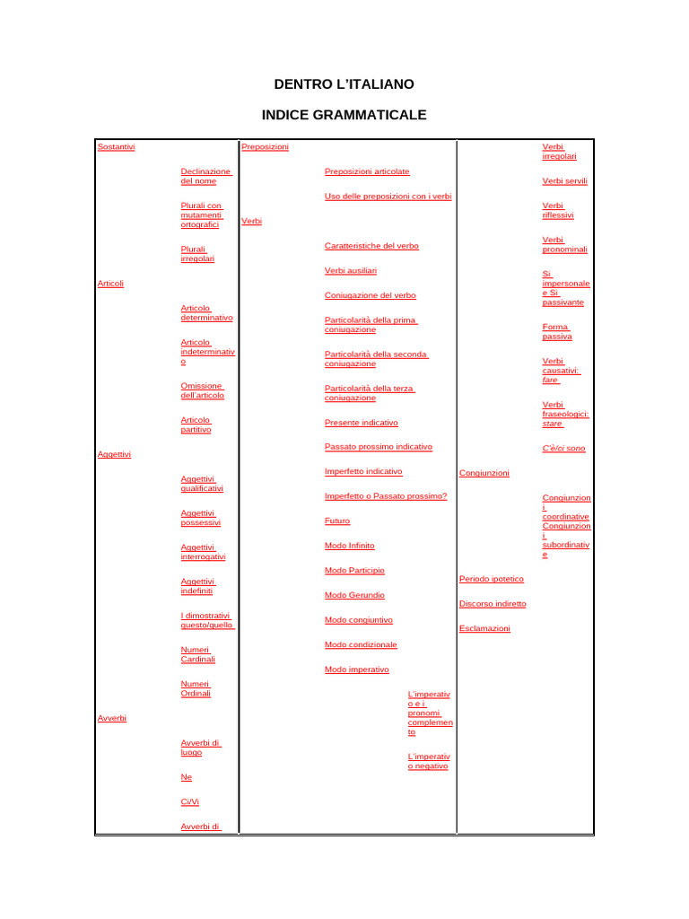 INDICE GRAMMATICALE