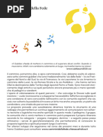Via Francigena, in realt un fascio di strade che nel Medioevo portava i fedeli da Canterbury a Roma e da l a Gerusalemme, lungo direttrici che, attraversando i territori del nostro Meridione, permettevano ai fedeli di raggiungere i porti pugliesi e di imbarcarsi alla volta della Terrasanta. In particolare, questa pubblicazione non che la punta di un iceberg fatto di una fitta attivit di ricerca e di indagine, promossa dalla nostra Associazione, che intende fornire alle Amministrazioni locali uno strumento utile per cerare un sistema di vie di pellegrinaggio nel Sud della nostra penisola, connesso alla rete degli itinerari europei. Il progetto promosso da Civita nasce dalla convinzione che la creazione di nuovi itinerari costituisce una grande opportunit per la valorizzazione dei territori interessati, in termini religiosi, culturali ma anche turistici. Basti pensare agli effetti decisamente positivi che potrebbe avere lintegrazione, tra laltro naturale e spontanea in un Paese come lItalia, tra il turismo culturale e lecoturismo, che, stando ai dati pi recenti, sono in costante crescita, lasciano alle economie locali una parte importante delle spese sostenute dai fruitori, muovono una tipologia di viaggiatori disposti ad una spesa medio-alta, ma soprattutto rispettosi dellambiente circostante, garantendo uno sviluppo sostenibile. La nostra esperienza ci insegna che lopportunit di una crescita costante e continua del territorio -non solo in termini economicirisiede proprio in una politica di integrazione. Non solo integrazione di turismi, di percorsi, di emergenze artistiche, di territori e paesaggi; ma anche di istituzioni, piccole e grandi, di persone e soggetti che, con diverse competenze, ma uguale passione e amore, stanno gi lavorando per diffondere e valorizzare il piacere del camminare lento lungo le Vie Francigene del Sud, che, oltre ad offrire unesperienza di grande emozione spirituale e di solidariet, permette di godere di paesaggi incontaminati e dellimmenso patrimonio culturale diffuso lungo tutto il cammino. E in questa direzione che abbiamo voluto operare, sostenuti dalla scelta consapevole e responsabile di Finmeccanica e Banco di Napoli che, in questa complessa operazione di ricostruzione storica degli itinerari di pellegrinaggio, di monitoraggio dello stato attuale dei lavori, di indagine sulla percorribilit di alcuni tratti, fino a questa pubblicazione e agli eventi promozionali che seguiranno, hanno riconosciuto uno strumento valido per creare le condizioni perch, anche idealmente, il Sud e il Nord dItalia si ricongiungano, per affacciarsi insieme al Sud e al Nord del mondo. Gianfranco Imperatori Segretario Generale dellAssociazione Civita