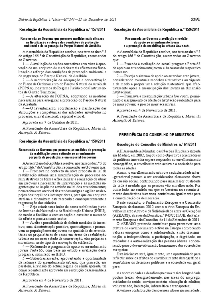Dirio da Repblica, 1. srie N. 244 22 de Dezembro de 2011 Resoluo da Assembleia da Repblica n.