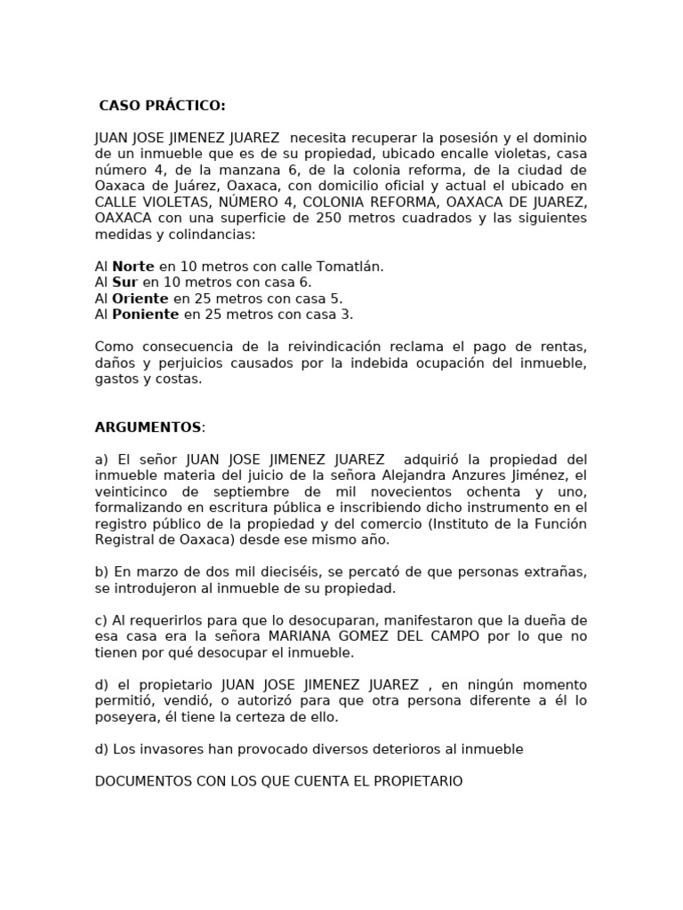 JUAN JOSE JIMENEZ JUAREZ necesita recuperar la posesión y el dominio