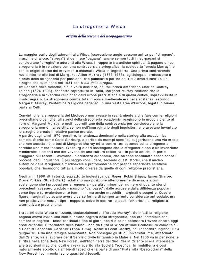 (Lo studio che segue rivolto prevalentemente ai lettori cristiani; l'intento non screditare alcuno, ma approfondire le origini di questa forma di spiritualit e rispondere ad alcuni luoghi comuni su wicca e cristianesimo.)