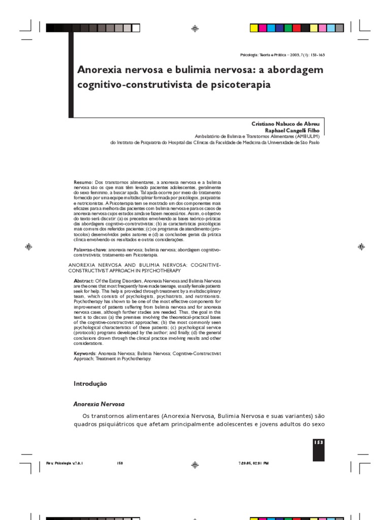 Palavras-chave: anorexia nervosa; bulimia nervosa; abordagem cognitivo-