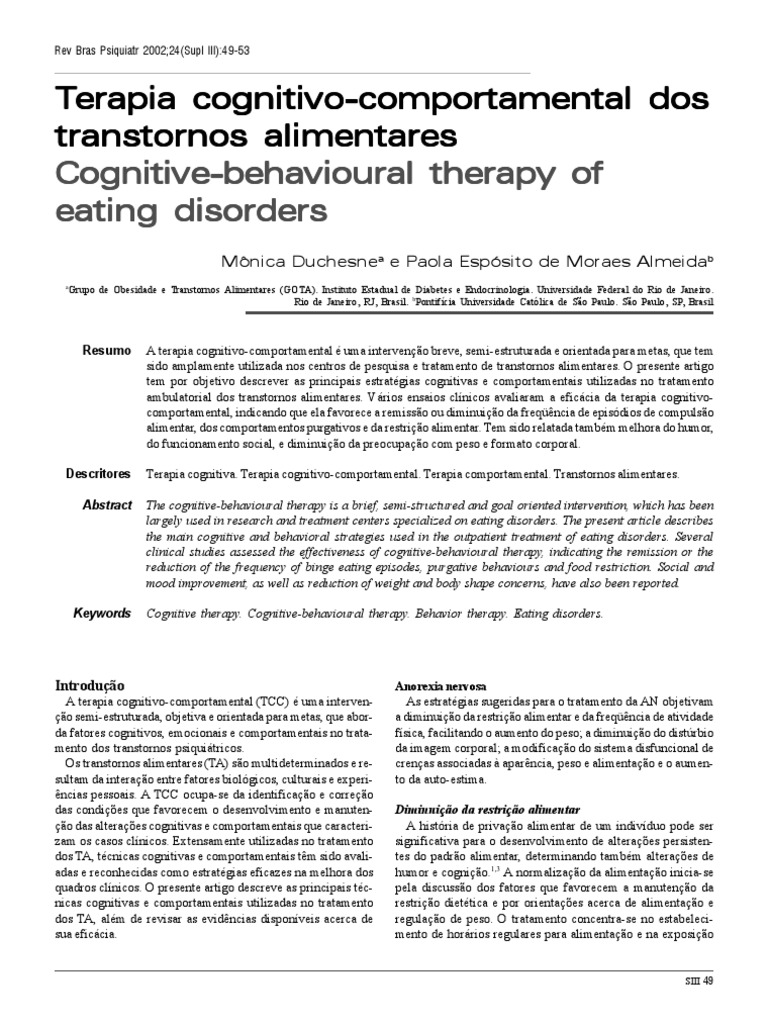 34. Duchesne M. Tratamento do transtorno do comer compulsivo: 40. Wilson GT, Eldredje KL, Smith D, Niles B. Cognitive-behavioural