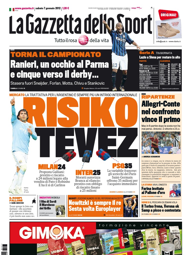 tro verso il Milan? Pi che altro un atto di rispetto per il City nel momento decisivo per la sua cessione. Tevez (e con lui il Milan) vuole saggiare la reale portata delloffensiva interista. Premesso che a Carlitos non interessa la soluzione francese, ora deve fare i conti con la nuova situazione. Nei fatti la proposta dellInter pi vantaggiosa per gli inglesi. Pi che per il milione in pi per la formula con cui Moratti simpegna a pagare i Citizen in estate. Nonostante ci Galliani non cambia le carte in tavola. Non