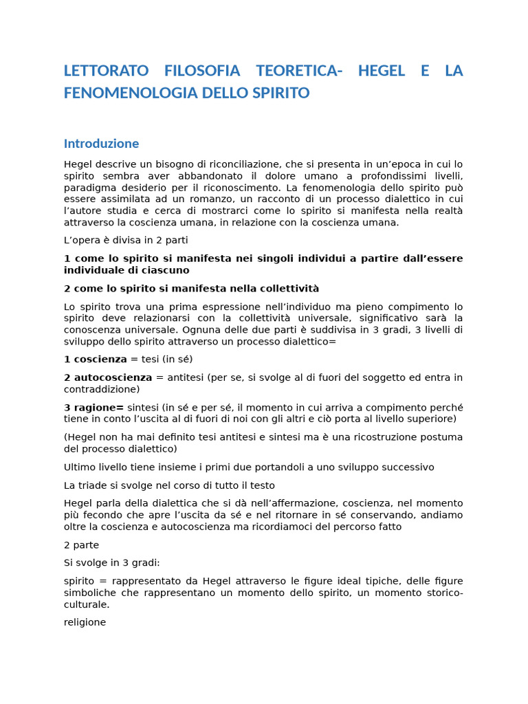 LETTORATO FILOSOFIA TEORETICA- HEGEL E LA