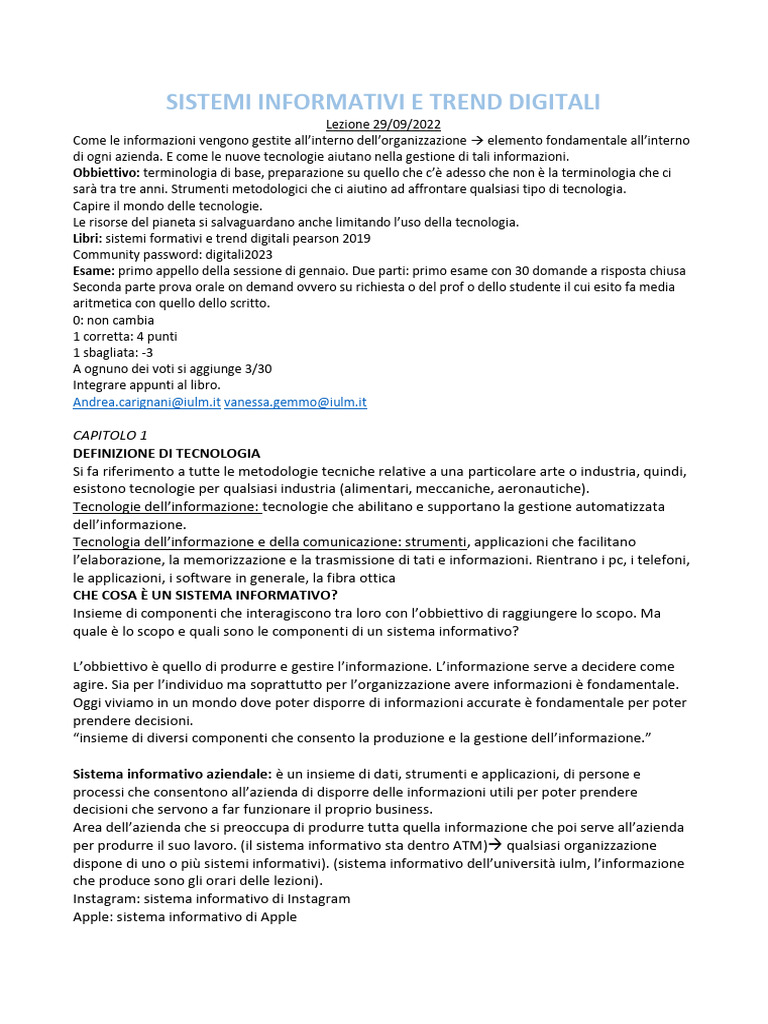 Ci occupiamo di sistemi informativi perché oggi la maggioranza dei sistemi informativi delle