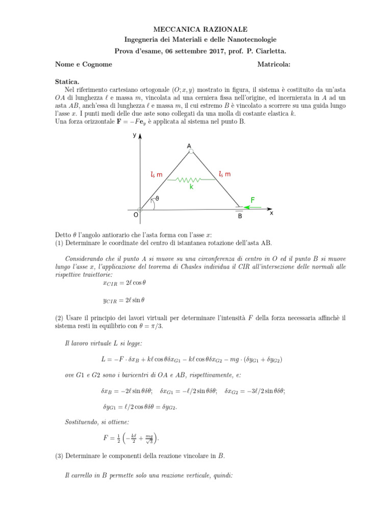 Prova d’esame, 06 settembre 2017, prof. P. Ciarletta.