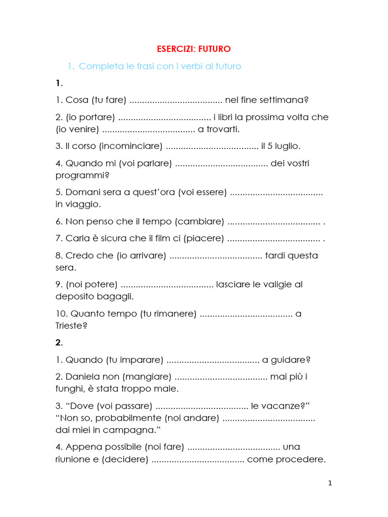 1. Completa le frasi con i verbi al futuro
