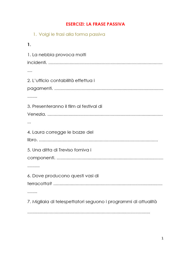 1. Volgi le frasi alla forma passiva