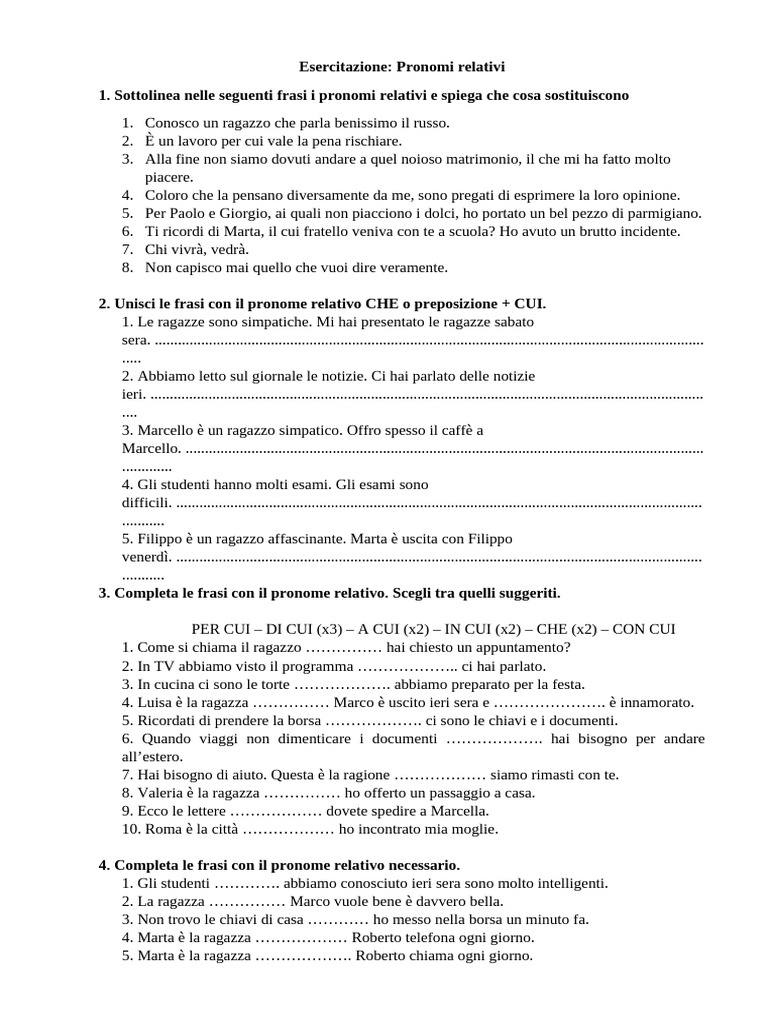 4. Completa le frasi con il pronome relativo necessario.