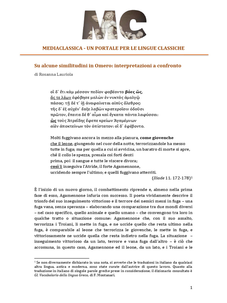 'lunghe', si contano più di 200 similitudini, di cui oltre 190 ricorrono nell'Iliade4.