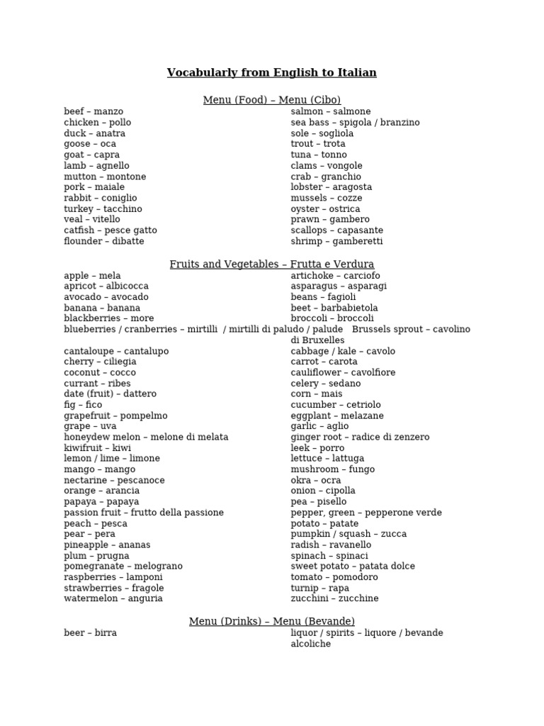 Food Preparation and Terminology – Preparazione e Terminologia Degli Alimenti