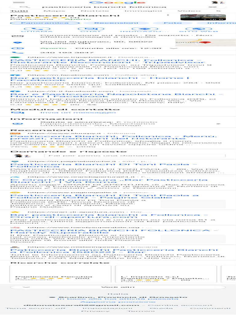 Bianchi“ a Follonica ➤ Orari di apertura ✓ Numero di