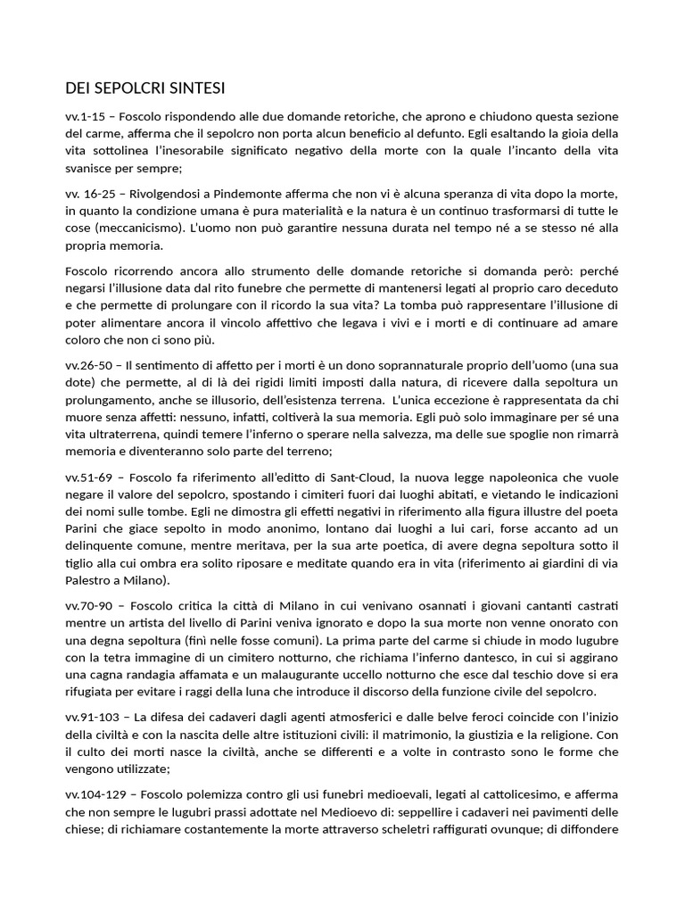 DEI SEPOLCRI SINTESI