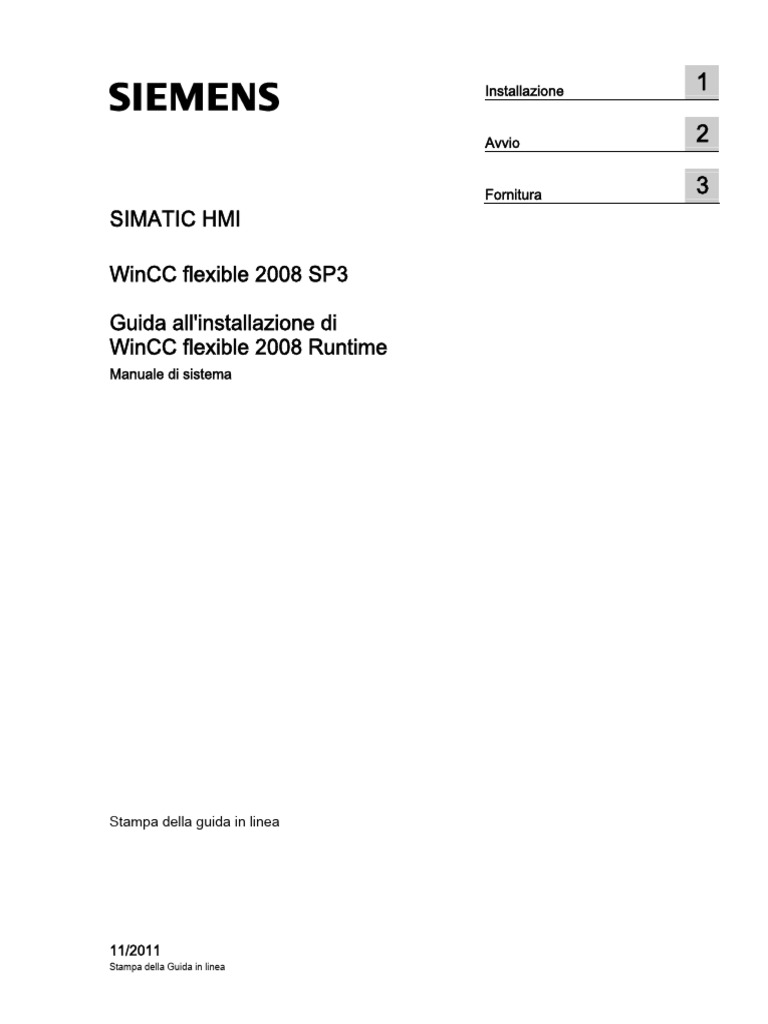 WinCC flexible 2008 SP3 Guida all'installazione di WinCC flexible 2008 Runtime