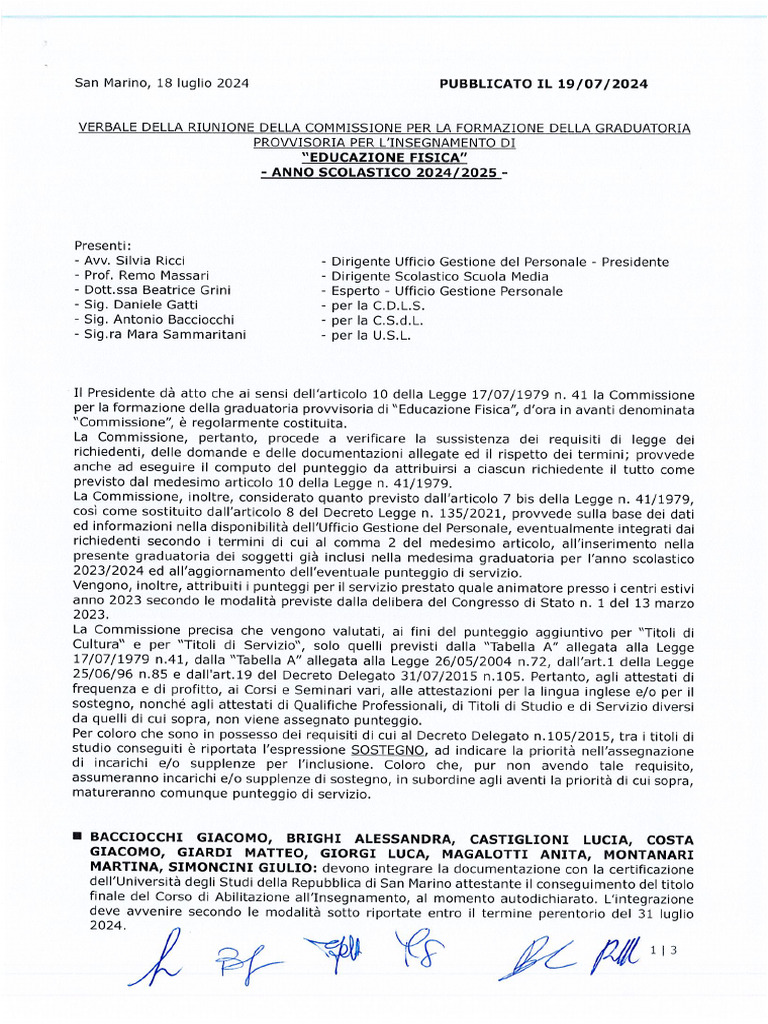 San Marino, 18 luglio 2024 PUBBLICATO IL 19/07/2024