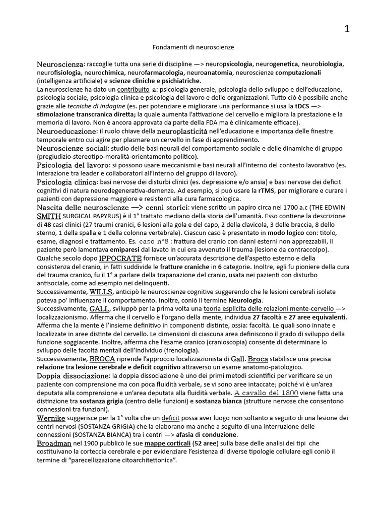 Nascita delle neuroscienze —> cenni storici: viene scritto un papiro circa nel 1700 a.c (THE EDWIN