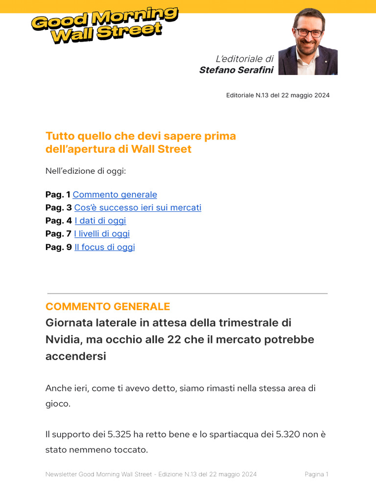 Newsletter Good Morning Wall Street - Edizione N.13 del 22 maggio 2024 Pagina 1