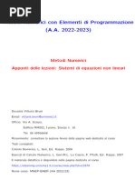 Dati 𝑛 + 1 punti d’appoggio 𝑥𝑖 ; 𝑦𝑖 , 𝑖 = 0, … , 𝑛. Esiste un unico