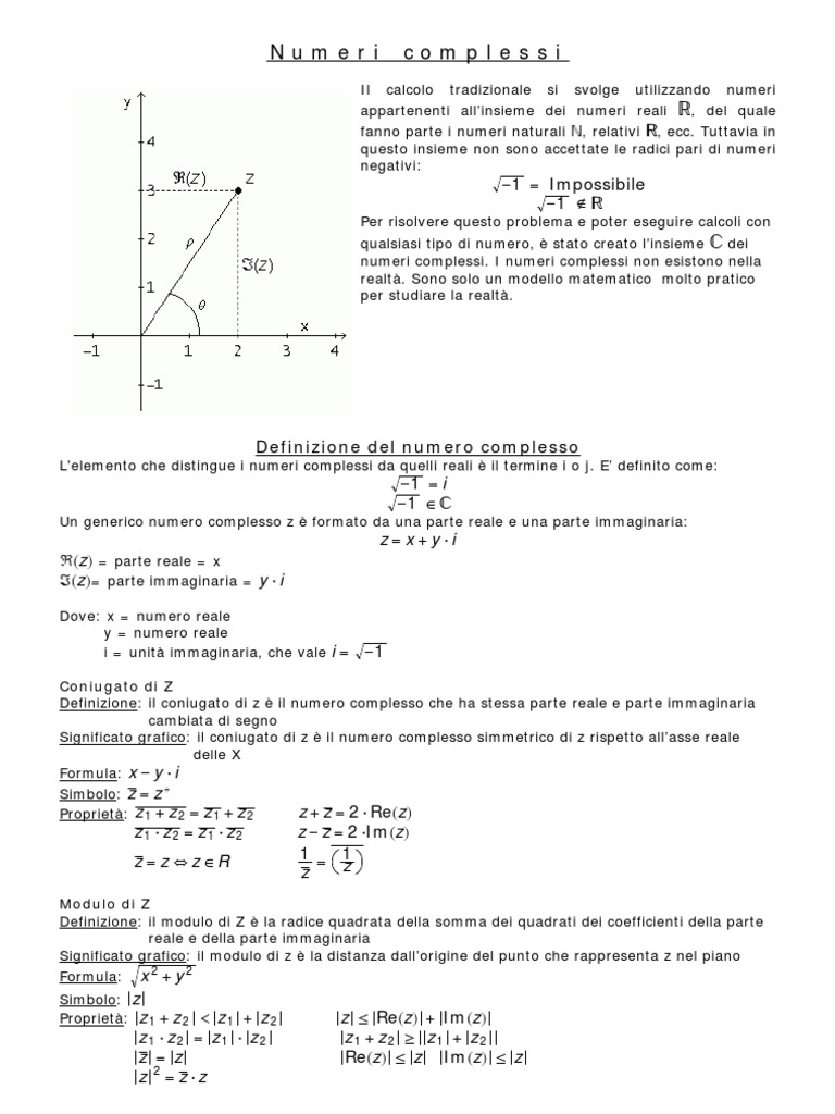 Dove: x = numero reale y = numero reale i = unit immaginaria, che vale i =