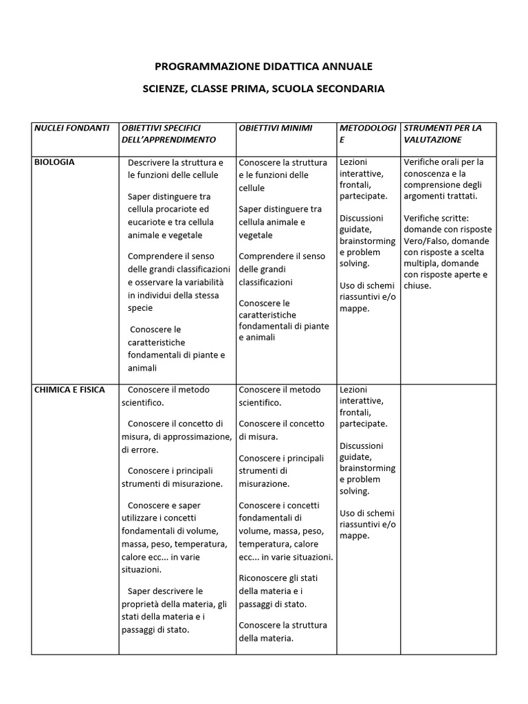 SCIENZE, CLASSE PRIMA, SCUOLA SECONDARIA