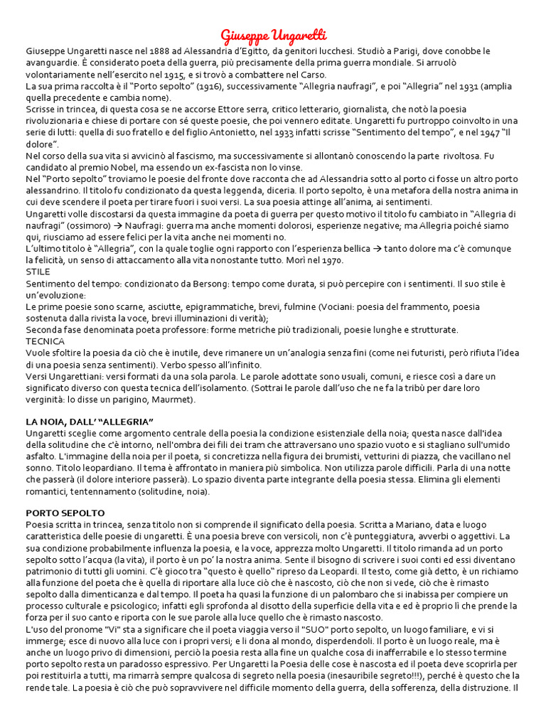 porto sepolto resta un paradosso espressivo. Per Ungaretti la Poesia delle cose è nascosta ed il poeta deve scoprirla per