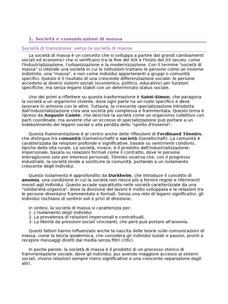 In sintesi, la società di massa è vista come un prodotto della modernità,