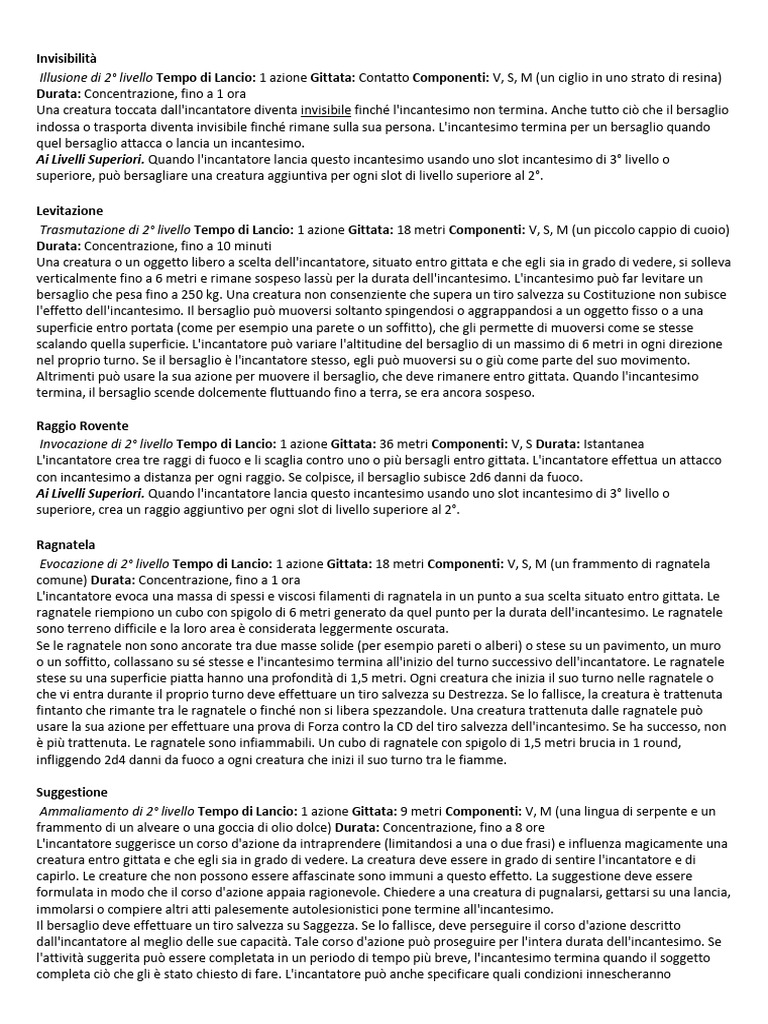 Invocazione di 2° livello Tempo di Lancio: 1 azione Gittata: 36 metri Componenti: V, S Durata: Istantanea