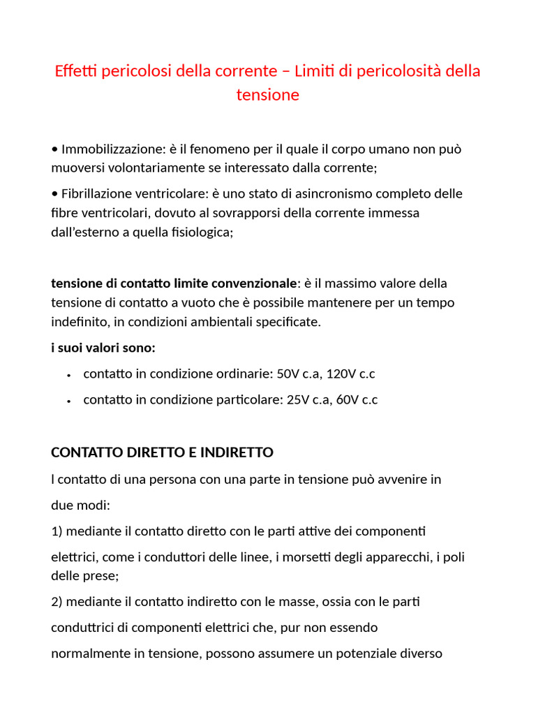 Affinché il contatto non sia pericoloso tale tensione non deve superare il