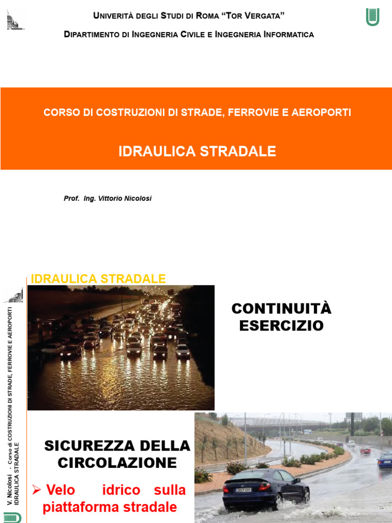 V. Nicolosi - Corso di COSTRUZIONI DI STRADE, FERROVIE E AEROPORTI IDRAULICA STRADALE RACCOLTA ACQUE DI PIATTAFORMA SUI PONTI