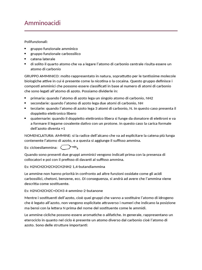 amminico principale e successivamente quello che si trova nella catena laterale