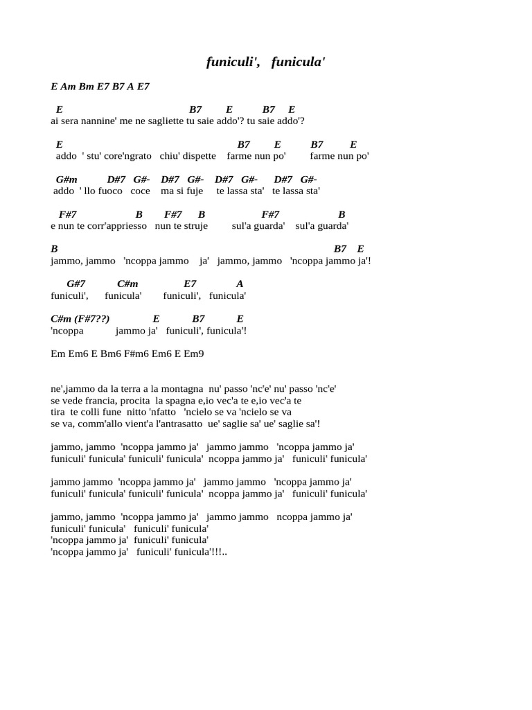 funiculi' funicula' funiculi' funicula' ncoppa jammo ja' funiculi' funicula'