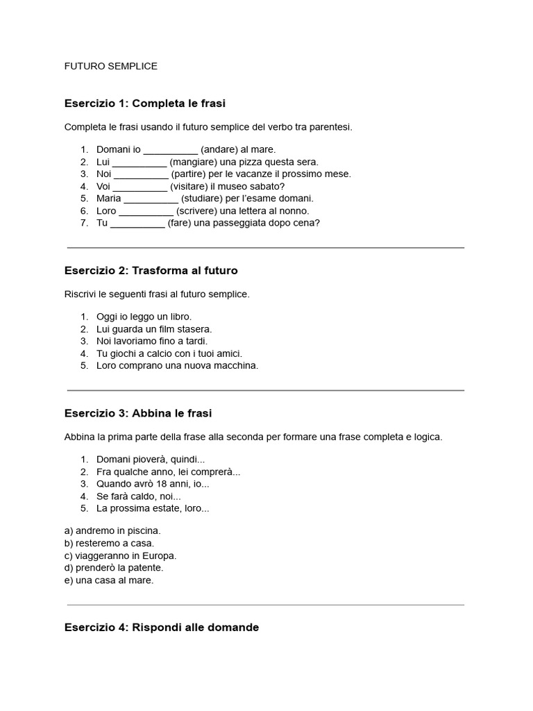 Completa le frasi usando il futuro semplice del verbo tra parentesi.