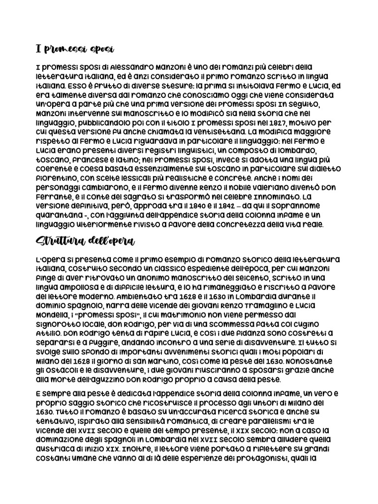 italiana. Esso è frutto di diverse stesure: la prima si intitolava Fermo e Lucia, ed