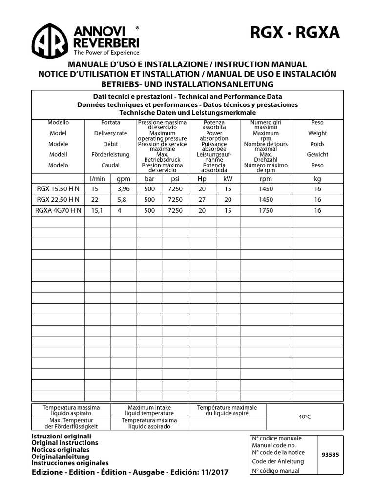 Para las bombas RCW, RCWS, XHW, RHW, WHW y WHWL se debe emplear solamente aceite SAE W90.