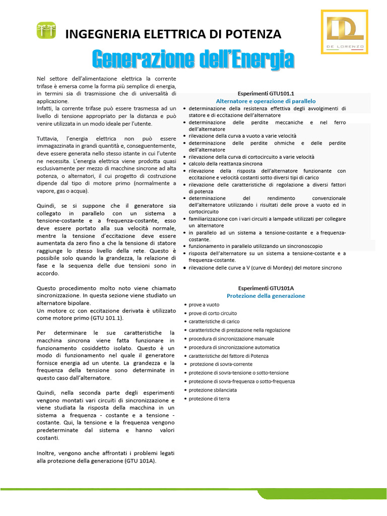 sincronizzazione. In questa sezione viene studiato un Protezione della generazione