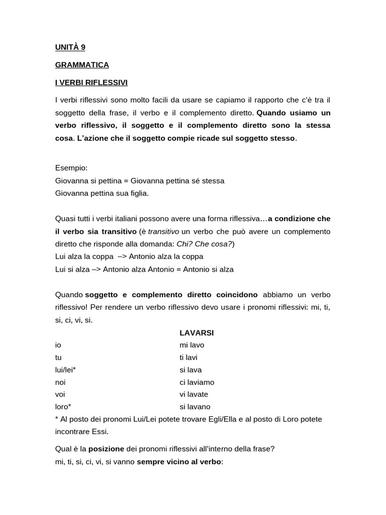 I VERBI RIFLESSIVI