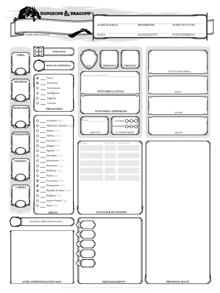 ALTRE COMPETENZE & LINGUAGGI EQUIPAGGIAMENTO PRIVILEGI & TRATTI