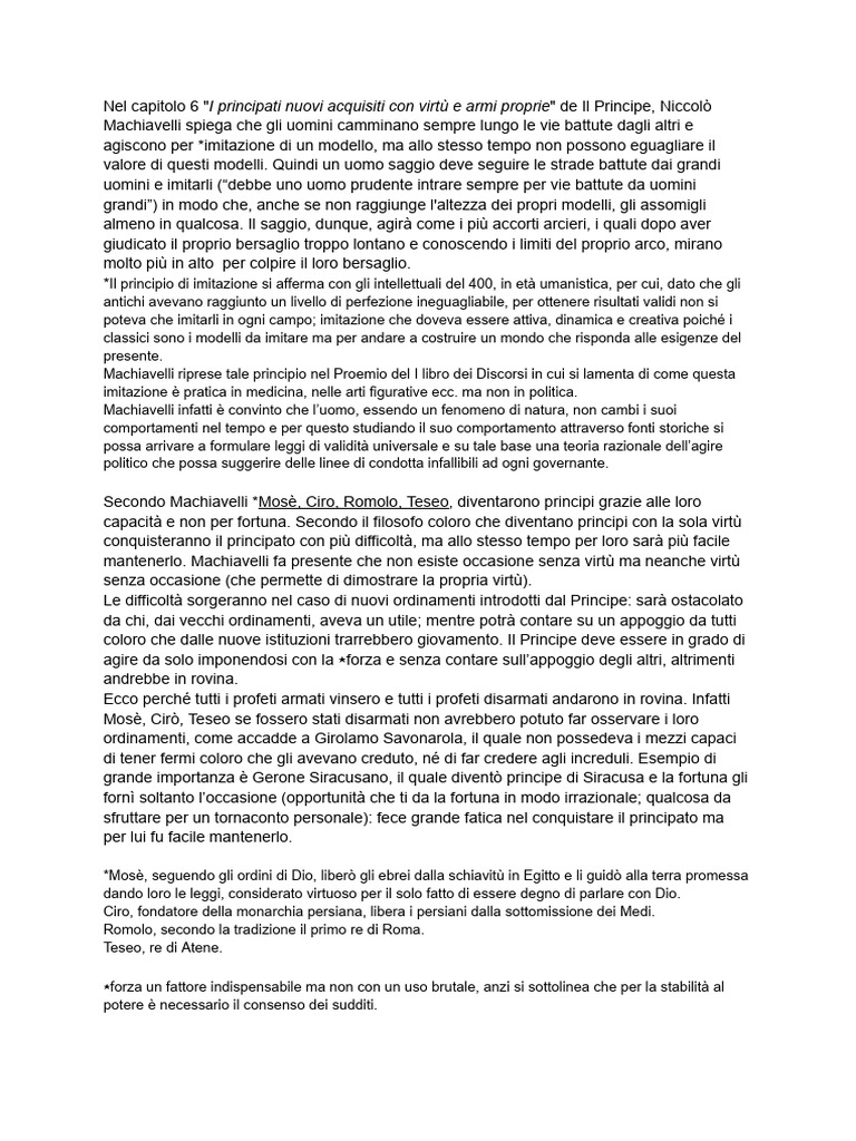 capacità e non per fortuna. Secondo il filosofo coloro che diventano principi con la sola virtù